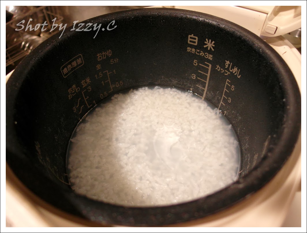 2. 清洗乾淨後, 以米:水=1:10的量入電子內鍋.