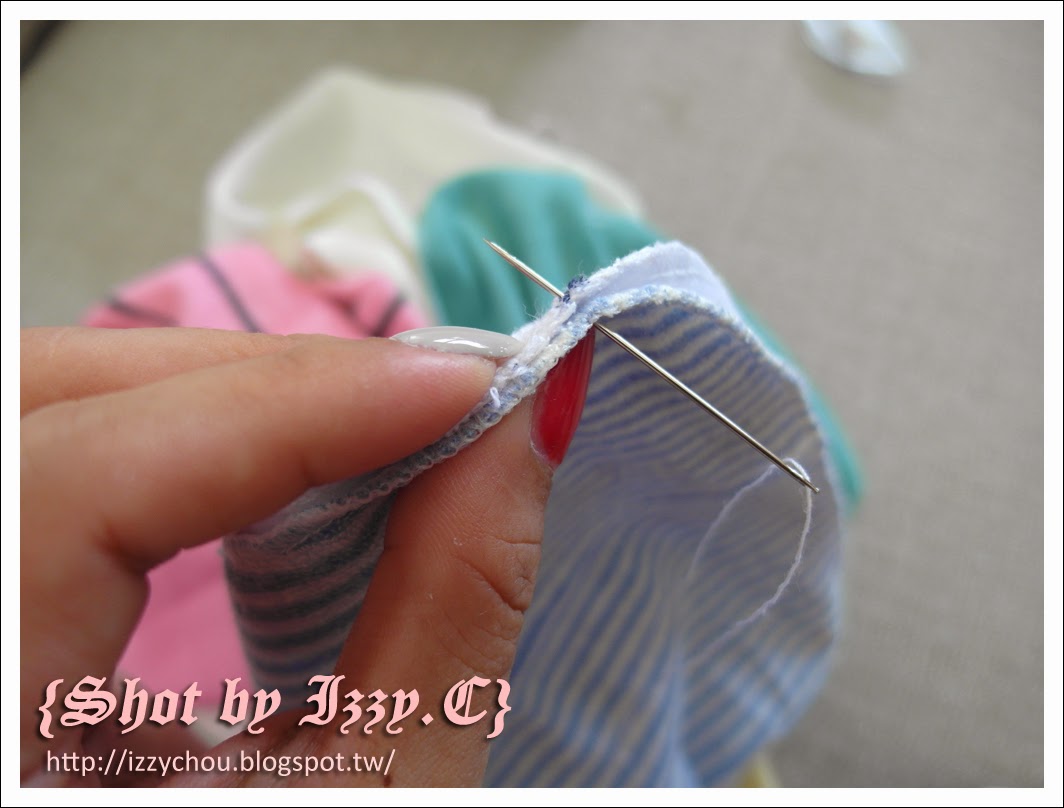 3. 大概縫個四五針就可以了,縫好攤開就像這樣子—