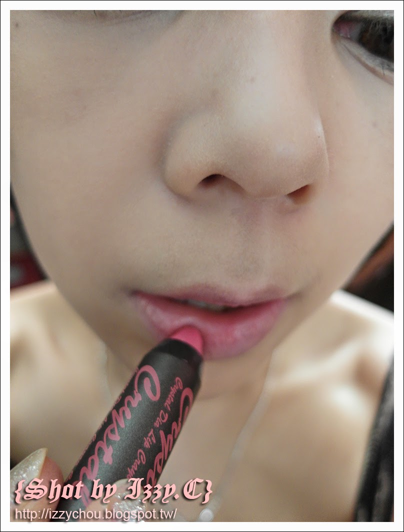 畫好眼妝當然不能忘了”氣色”最重要的唇妝,使用的是韓國Crystal Dia的嬌DD豐唇蠟筆—
