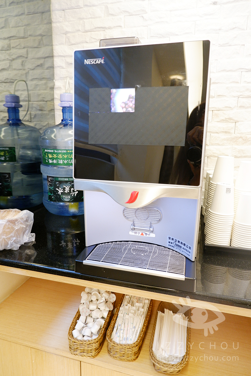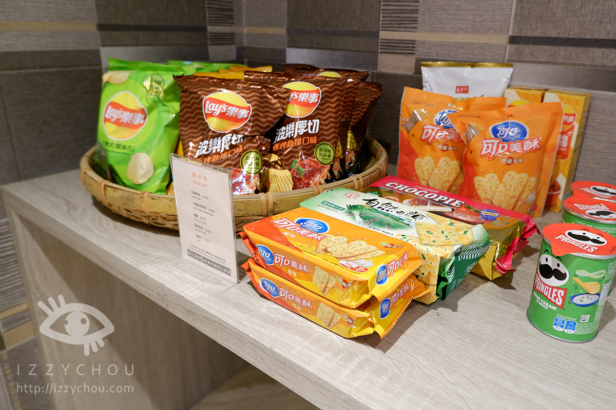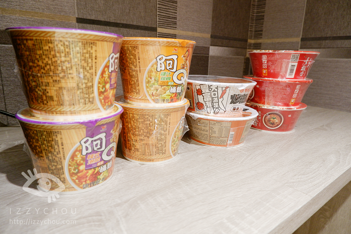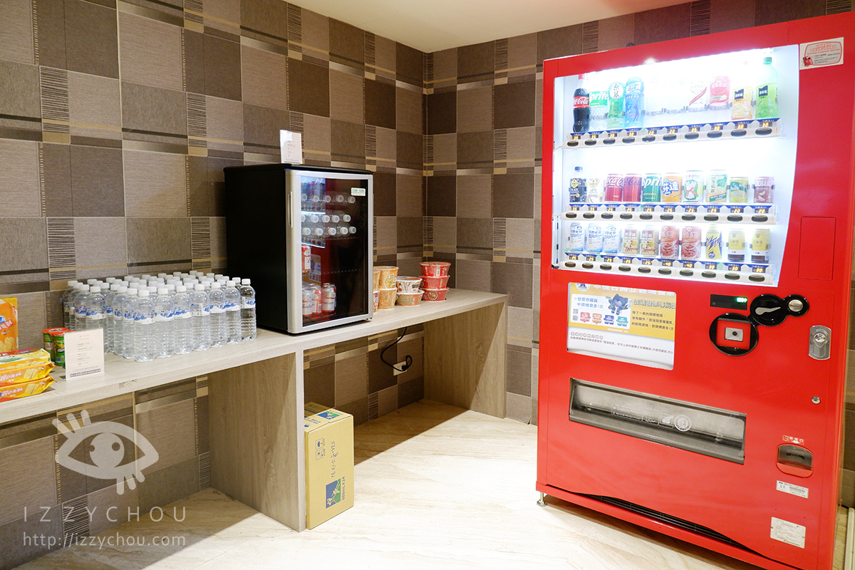 在 1 樓休息區,有無人商店,裡面啤酒、飲品、餅乾、泡麵等…旅客可以自取購買。