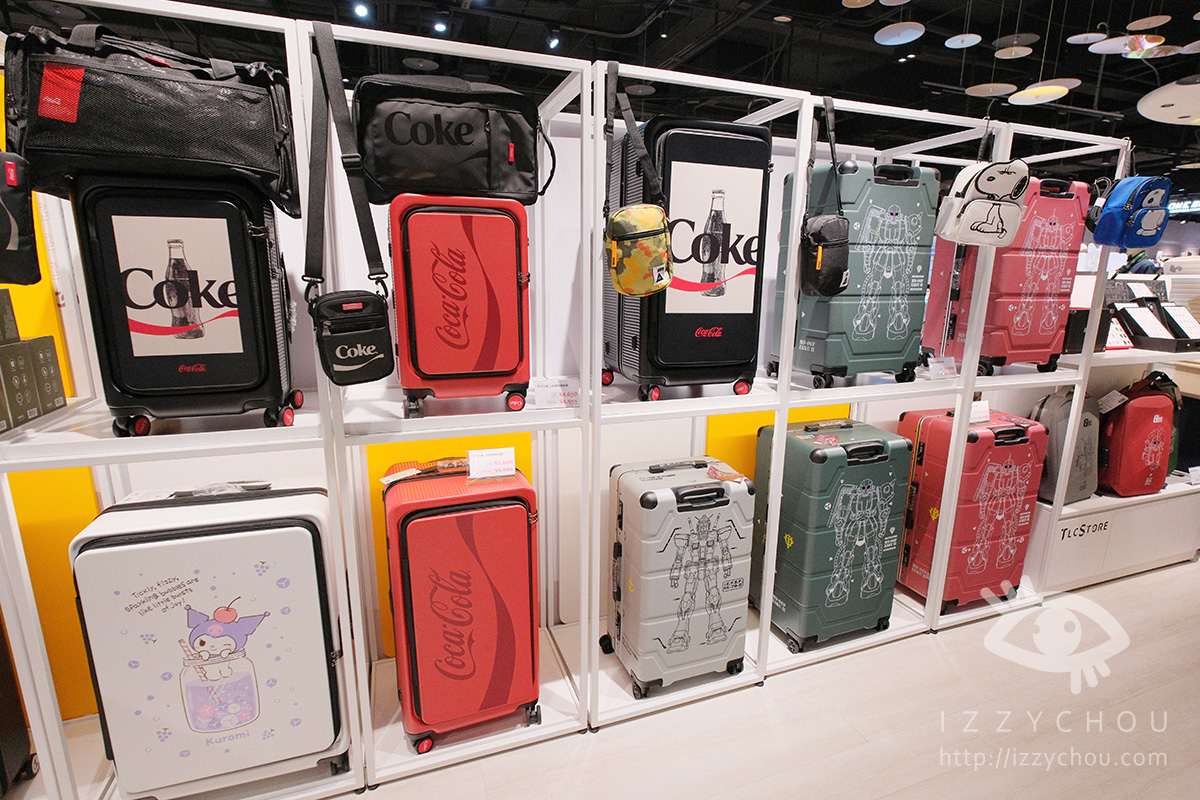 這間的行李箱超酷!幾乎全部都是聯名款,有北歐小刺蝟、排球少年、COKE COLA、鋼彈、SNOOPY…應有盡有!