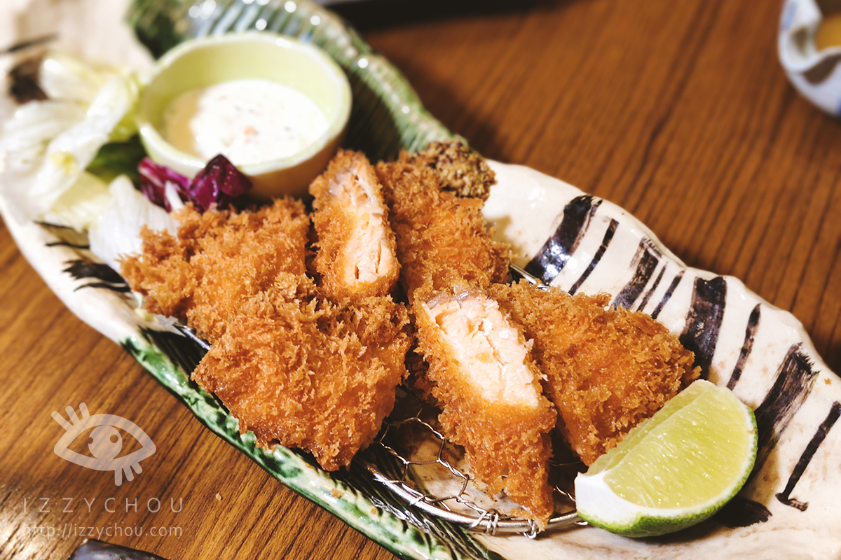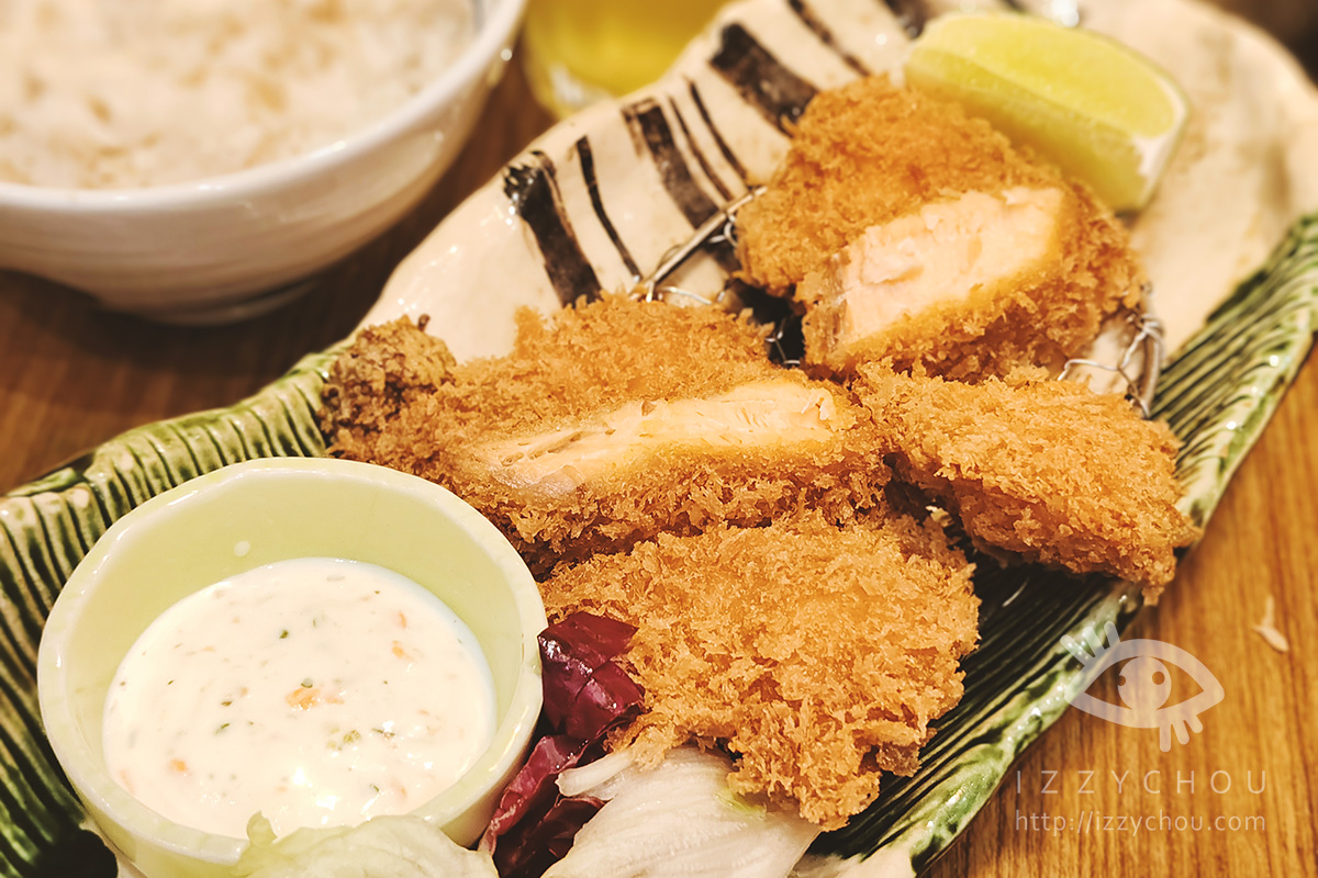使用鮭魚菲力部位,鮭魚新鮮、炸衣薄脆、口感細緻,並且富含魚油,完全鮮嫩不柴。