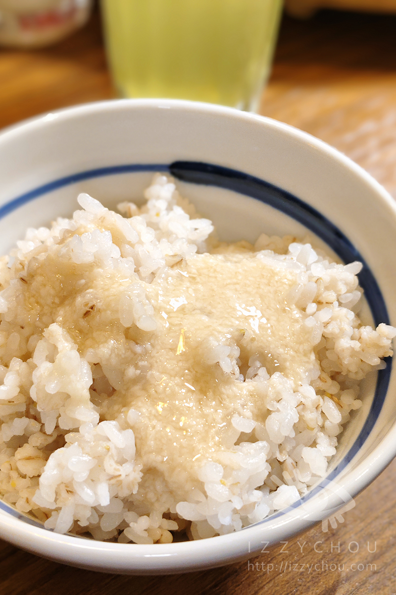 主食可以選白飯或麥飯,我們選了麥飯,上面淋了山藥泥,吃起來更有飽足感也比較清爽。