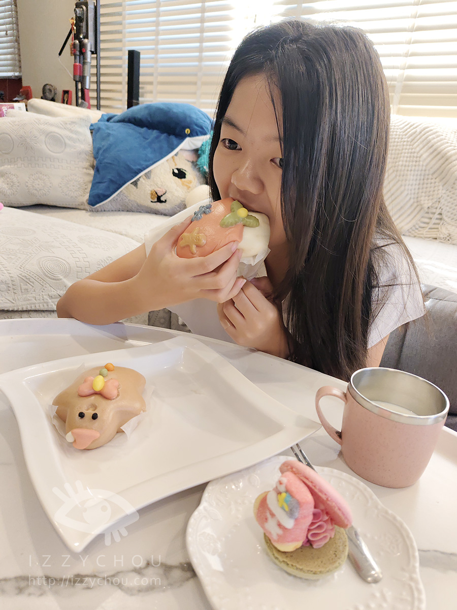 我帶了兩個造型饅頭跟馬卡龍回家,隔天早上正好當孩子早餐,一早就被可愛到,太幸福了~~