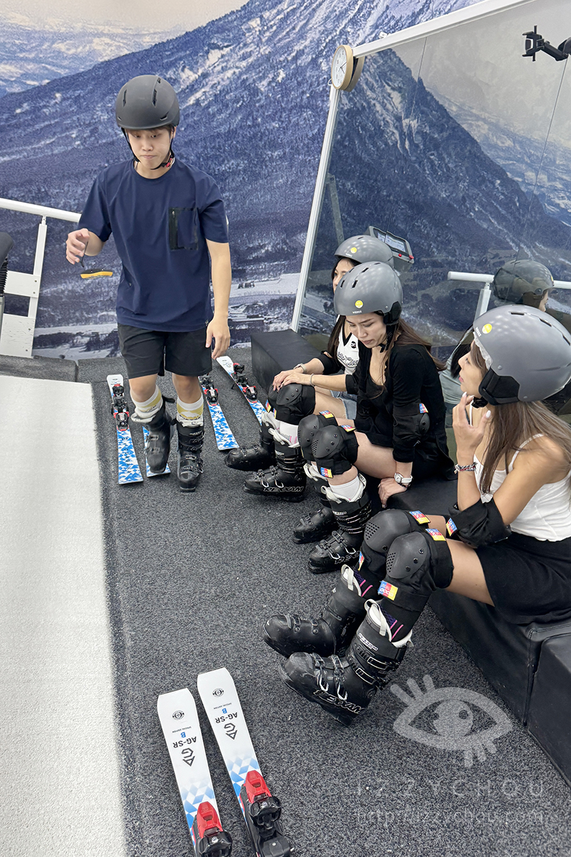 老師會很詳細的教學,順便告訴大家一些滑雪基礎的防護知識。(ps. 雪襪要自備,沒有的話現場可以買 $300/雙,可刷卡)