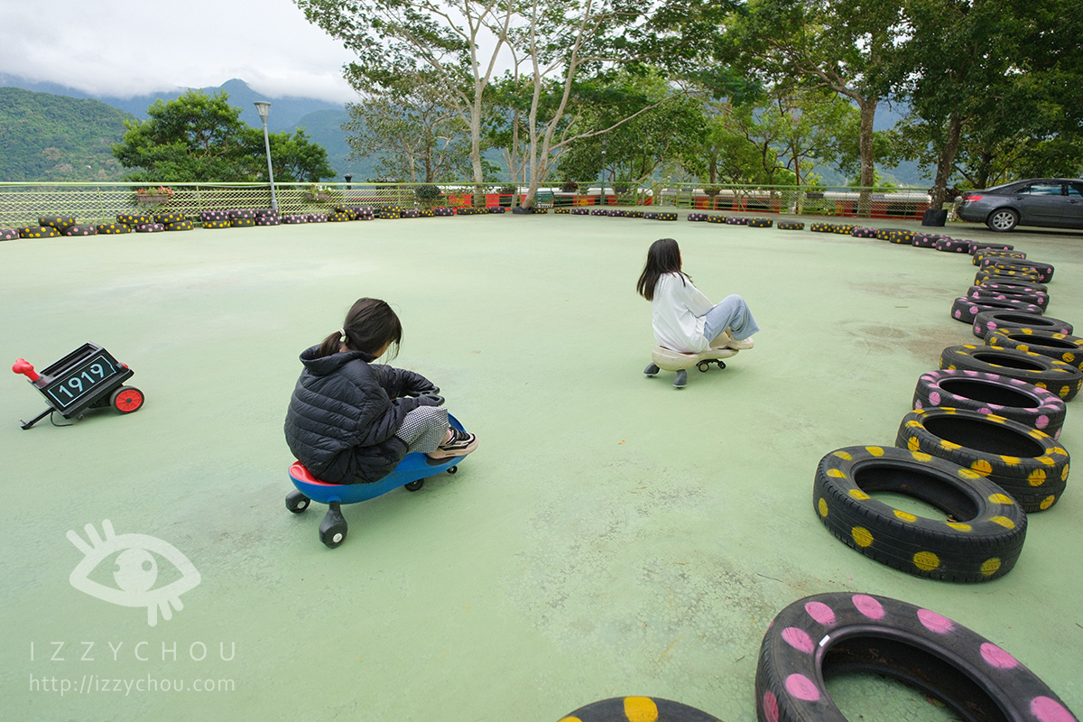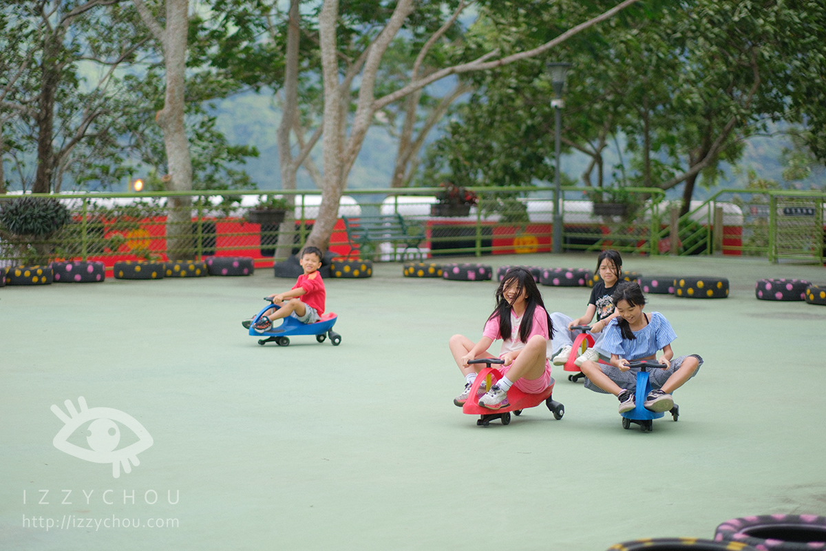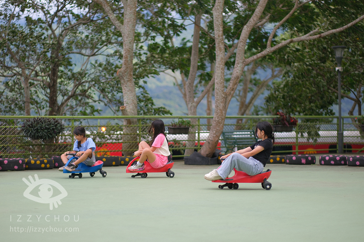 除了溜滑梯之外,蘇維拉莊園還設有專屬的扭扭車遊戲區,是親子旅客必停留的地方。園區規劃了一塊平坦區域,小朋友可以騎著扭扭車在森林裡穿梭,安全又好玩,大人也能在一旁拍照或陪伴。