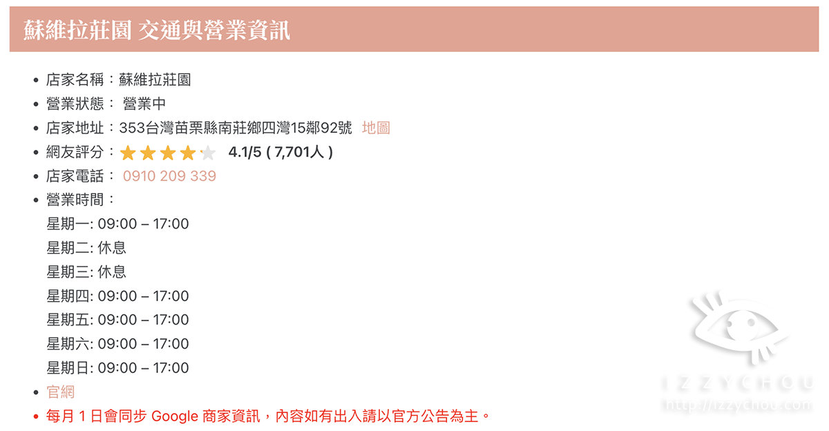 例如我分享苗栗景點,只要在商家資訊小幫手上登錄,系統就會直接幫我帶出google地圖上關於店家的所有資料包含實際評分,超級貼心~